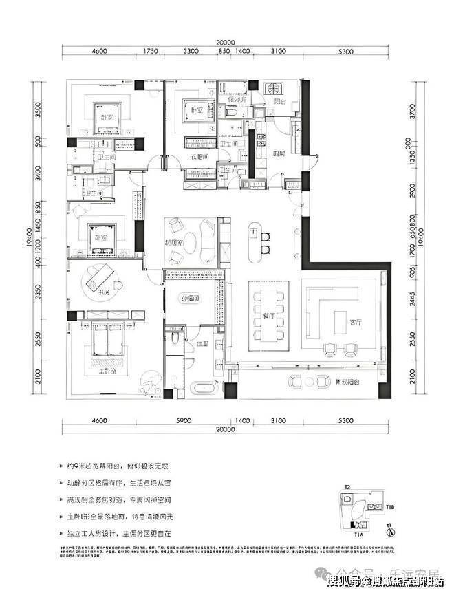 230㎡三房两厅三卫:主要分布在1栋一、二单元6-32层,为02、03户型。