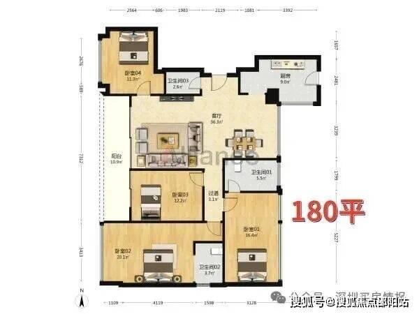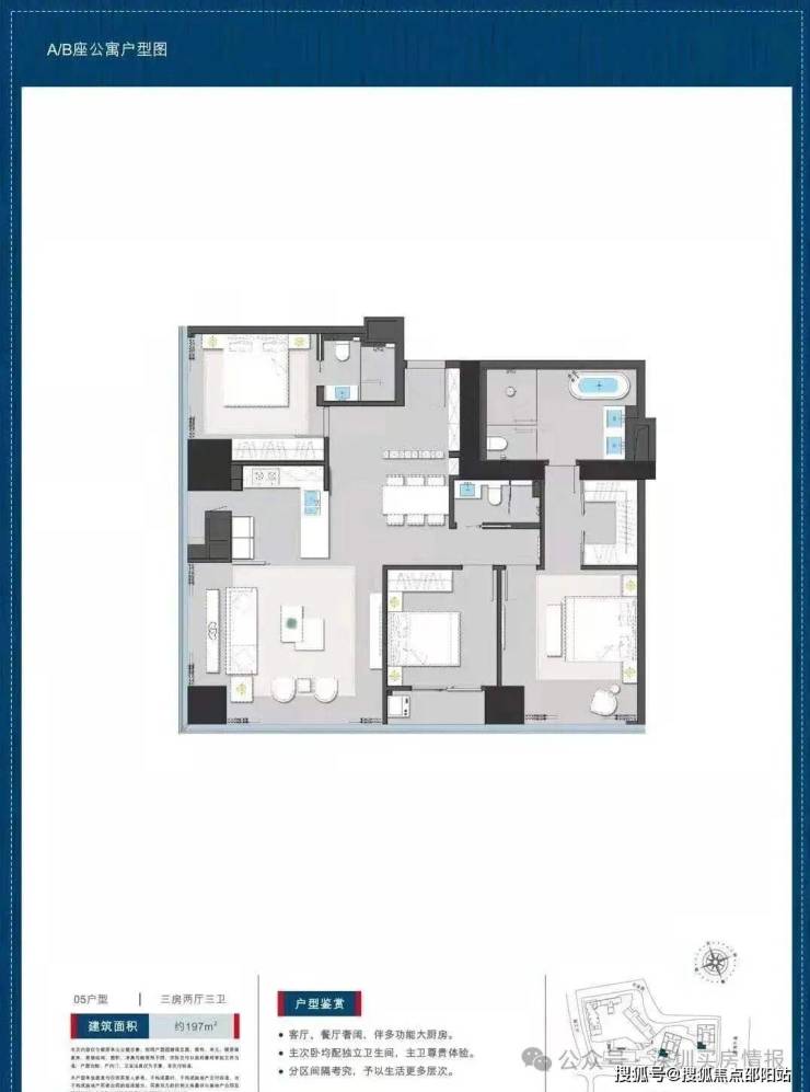 公寓197平户型三房两卫: