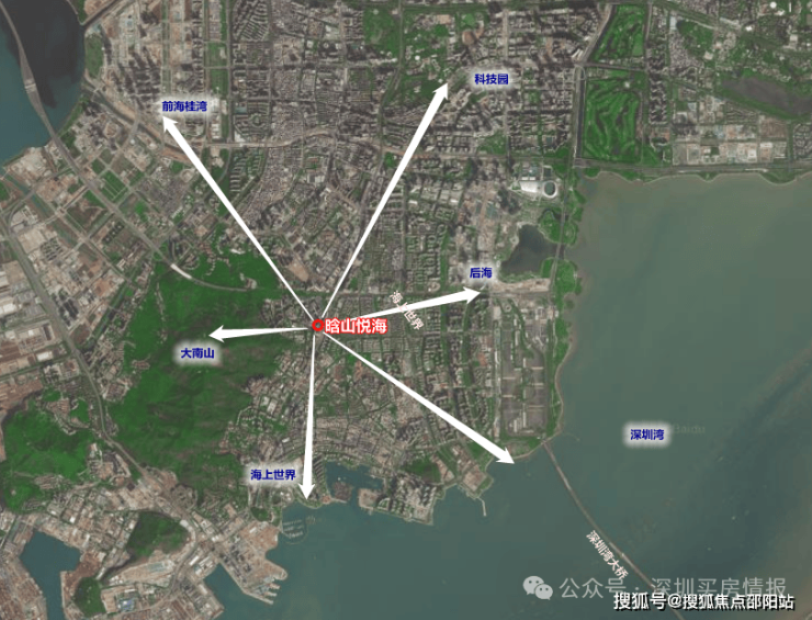 晗山悦海城楼盘大致位于南山区的中心位置,得益于周边的建筑普遍比较低矮,所以四面八方都有很广阔的视野!