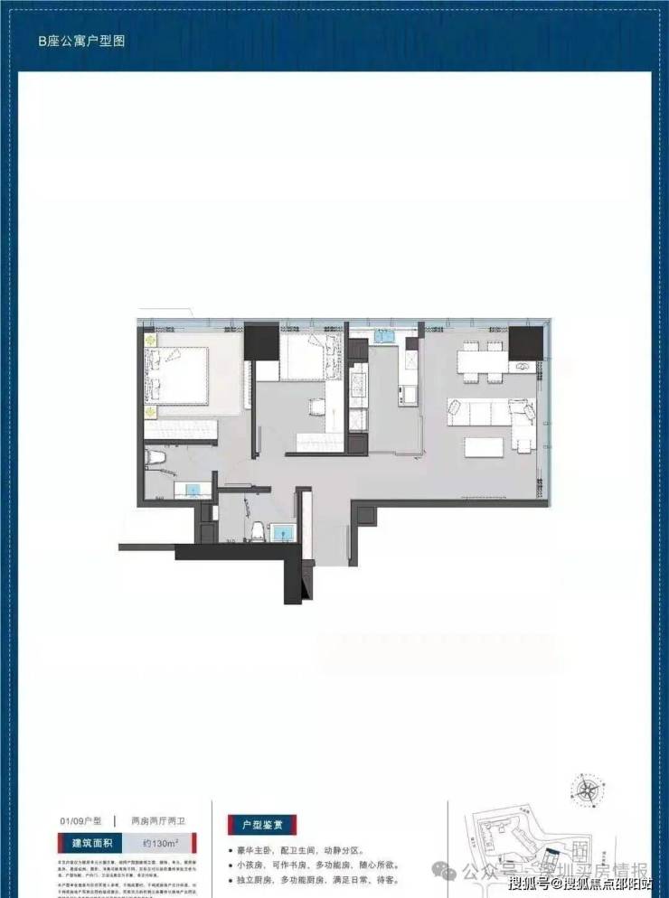 公寓130平户型两房两卫: