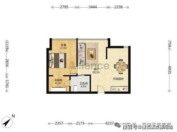 公寓90平户型一房一卫: