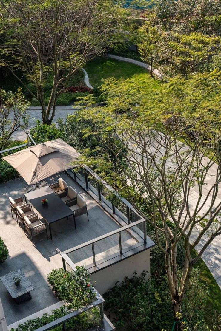 但住进别墅,相当于拥有了一方天地。正如郁达夫在《故都的秋》里写到:“早晨起来,泡一杯浓茶,向院子一坐,你也能看得到很高很高的碧绿的天色,听得到青天下驯鸽的飞声。从槐树叶底,朝东细数着一丝一丝漏下来的日光。”一个院子,将阳光与自然和家紧密相连,让建筑与天地模糊了边界,我们住在房子里,更是住在自然里。