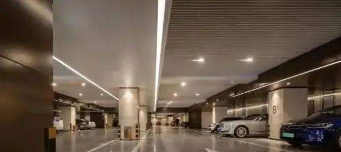 车库色调主要以香槟色为主,通过对行车通道与停车区域的色彩对比处理室内空间关系;