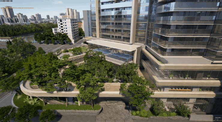外立面采用大面积铝板设计,为减少分缝过多打破一致性,琶洲·樾 | 华樾采用的是足足3.3米尺度超大定制尺寸铝板。