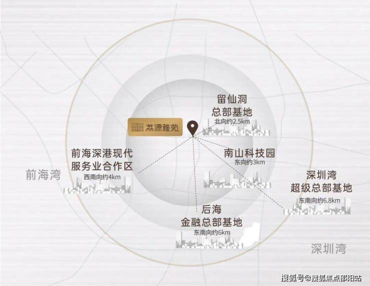 前海深港合作区(西南向约4km):定位国家战略性门户枢纽,未来将打造成世界级城市新中心,规划就业人口约65万人,居住人口15万人。