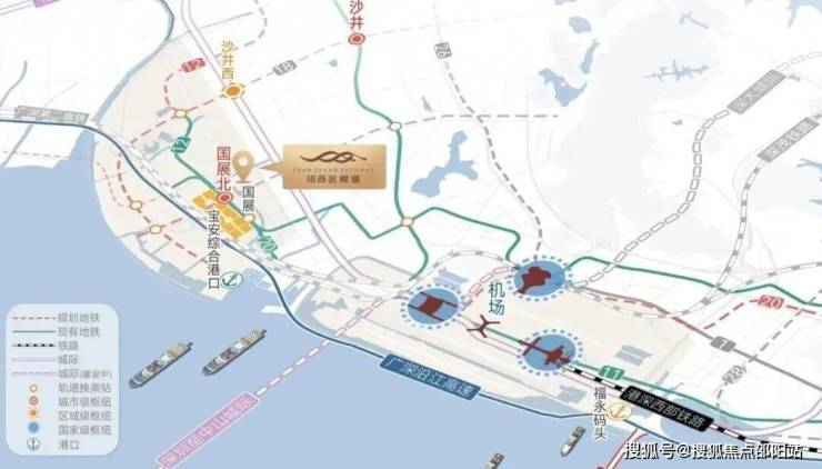 ❏ 交通超配丨海陆空铁轨五位枢纽🚇铁:步行约50米即达国展北站地铁口,可接驳乘坐12/20/30号线(规划中)。约30分钟到宝中、40分钟到南山🚗陆:距沿江高速入口约1.5公里,东抵福田、南山,西达东莞、广州。经深中通道可直达中山、珠海✈空:驾车可快速抵达宝安国际机场T3航站楼,直飞往全球超120个国家🚈轨:直线距离约1.5km达穗莞深城际福海西站,快速接驳大湾区🚢海:直线距离约12km达机场码头,通往港澳;直线距离约3.5km达海洋新城超级码头(在建)