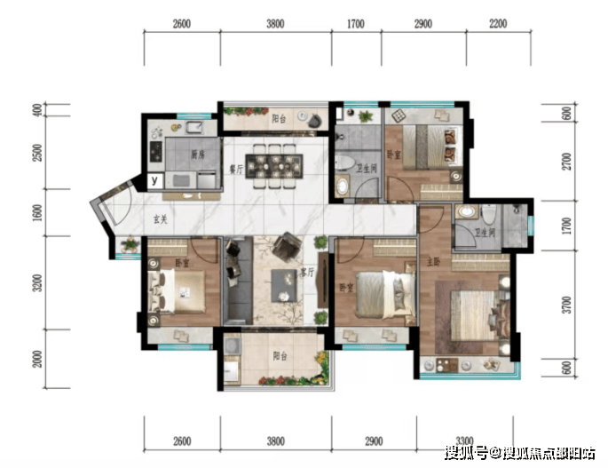 『格局方正 双联景观阳台』:131户型 四房两厅两卫