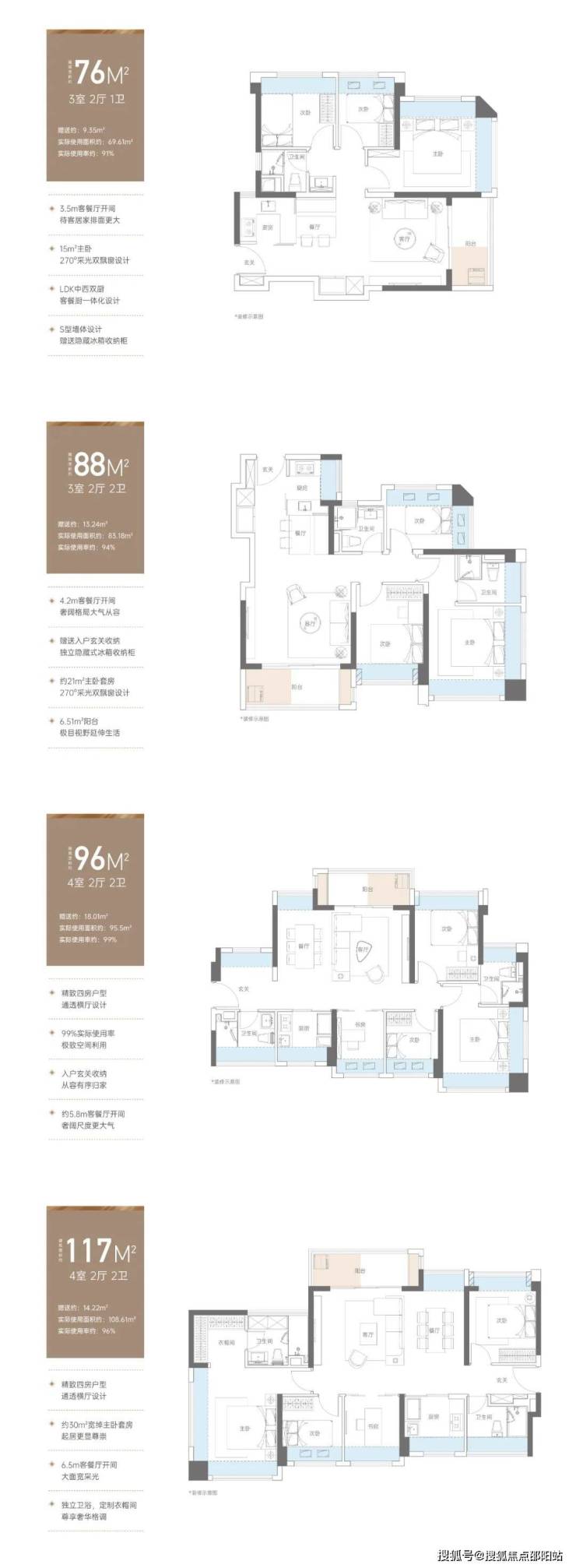 ≋高质产品:建面约76-130㎡精质美宅,实际使用率达91-99%,更大居住空间,更高舒适度;