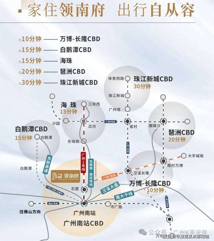 一条汉溪大道,串联南站商圈、江南西商圈、汉溪长隆商圈、珠江新城CBD、琶洲CBD和万博商圈,城市繁华便捷可享。
