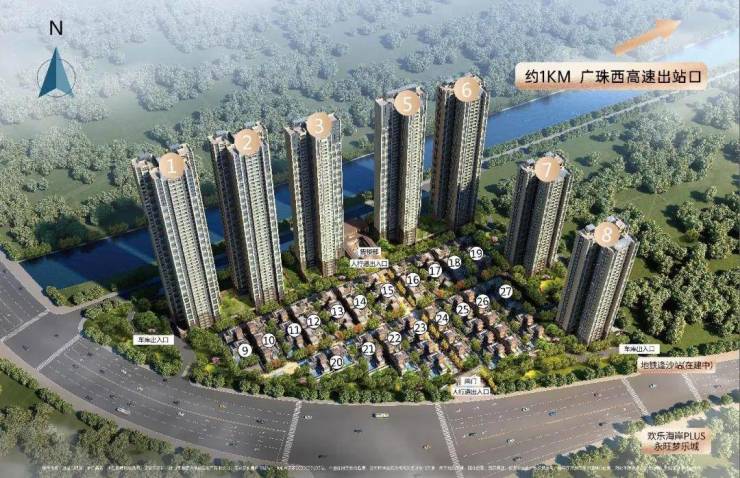 枢纽中心:地铁3号线逢沙站(欢乐海岸站)(在建)上盖,2站广州南