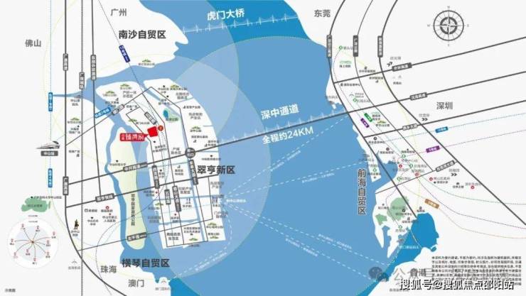 深中通道全长约24公里,是集“桥、岛、隧、水下枢纽互通”于一体的世界级跨海交通集群工程。一桥飞架,改写珠江口两岸融合发展格局,深中通道将深圳至中山约80分钟的车程缩短为约30分钟,加速深中同城,实现工作在前海,居住在西岸,生活自由切换,实现两岸同频发展,共荣繁华。