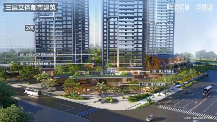 2栋紧连社区公共空间,下楼即享全龄邻里生活。南侧紧邻三层立体都市景观—约2000㎡廊下烟火商街、约1000㎡中央车站、约1000㎡抬高式檐上浮岛花园露台。闲暇时分,或至露台花园观景,或沿流水庭院漫步,四时美景为伴,悦享诗意日常。