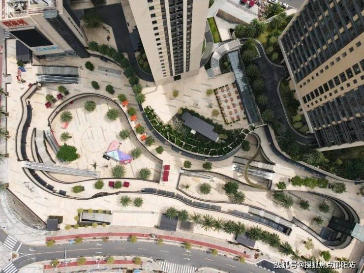 步入四海城,随处可见建筑设计师对商业空间新模式的尝试与思考。项目由国际知名建筑团队操刀设计,利用项目半山地貌特性,采用“退台式”公园设计,从 39 米山顶公园到被层层打开的立体化空间,实现园林景观与潮流元素的交织碰撞。
