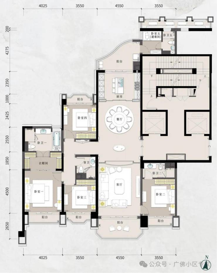 半岛五號规划以南北两排沿江岸线走向排布势如九星捧月,间距最宽可达约173米外有珠水都市之景,内藏恢宏园林之美当是臻稀难得的绝版一线临江奢雅大平层