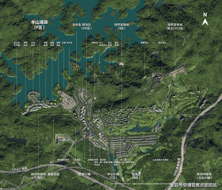 中旅阿那亚九龙湖是一个物业属性丰富的超大社区,包括:已开发悦源庄(A区)、悦沐庄(D区/E区)、美茵花园、东半岛等区域;正在热销的中心小镇(C区)、半山湖岸(F区),待开发的B区、国王区等,100万㎡的建筑体量将成就又一个旅游地标。