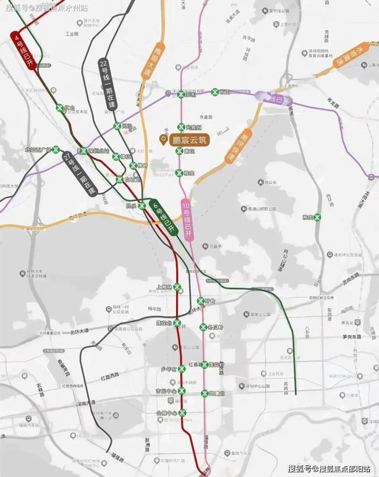项目地铁出行非常便利,距离地铁 10 号线南坑站约500 米,周边还有 5 号线民治站、4 号线白石龙站以及规划中的 22 号线等多条地铁线环绕,距离福田(2站)很近,可通达福田口岸(8站)、福田中心(4站)、五和枢纽(1站)、华为(5站)等产业重地。