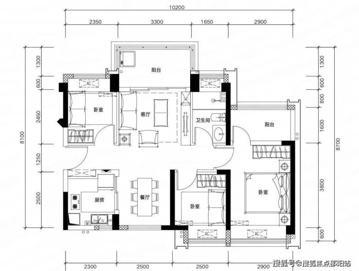 ✅ G03户型:约81㎡ 三房两厅两卫:
