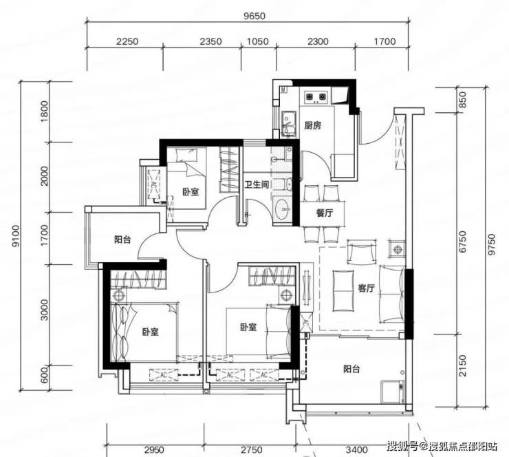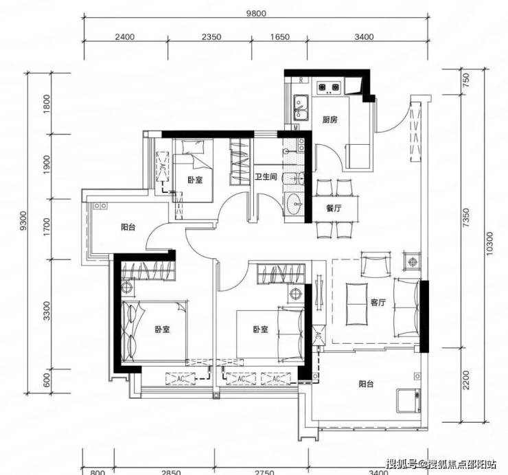 ✅ H02/03户型:约81㎡ 三房两厅两卫: