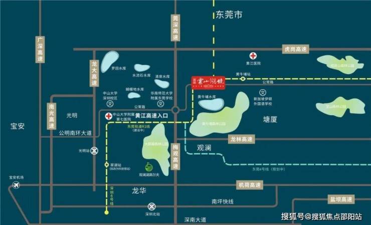 项目无缝衔接东莞地铁R1、R4线,距离东莞规划R1黄牛埔站,R1、R4线双轻轨交汇站黄江中心站均为5分钟路程。未来将与深圳6号线、广州5号线对接,此外,广深港高铁中心(光明城站)近在咫尺,未来将成为深圳西北交通门户,近距离享受畅达珠三角的便捷轨道交通