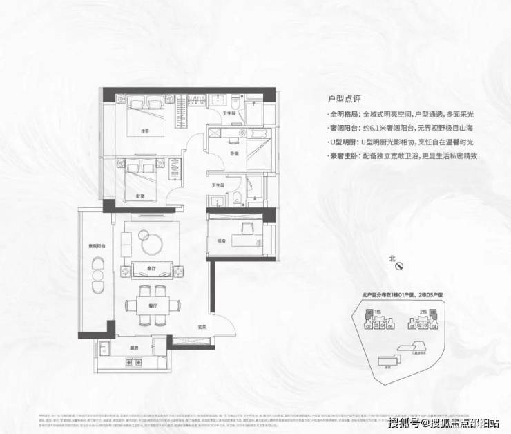 167㎡五房:双龙抱珠格局,6.4米巨幕阳台,主卧套间带衣帽间。