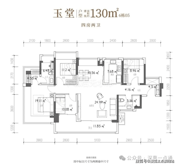 127-130㎡的4房2厅2卫,折后总价617-645万/套,单价4.75-5.1万。
