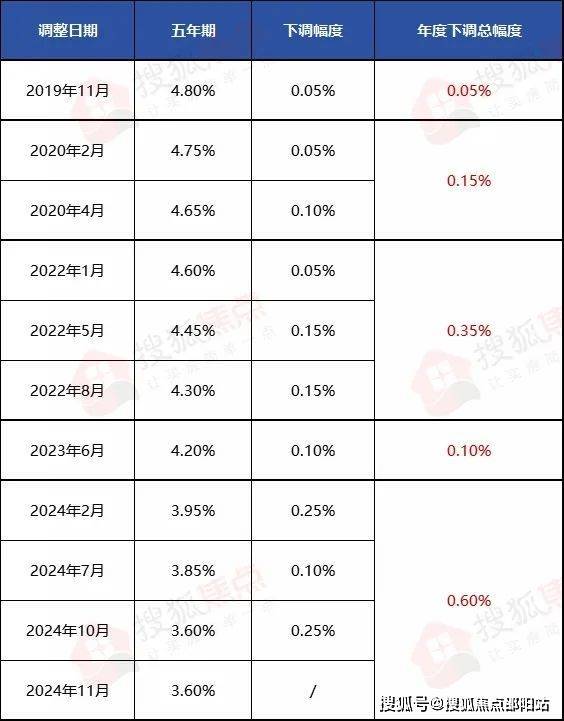 第一次在2月,从4.2%调整至3.95%;第二次是在7月,从3.95%调整至3.85%;第三次是10月,从3.85%调整至3.6%。