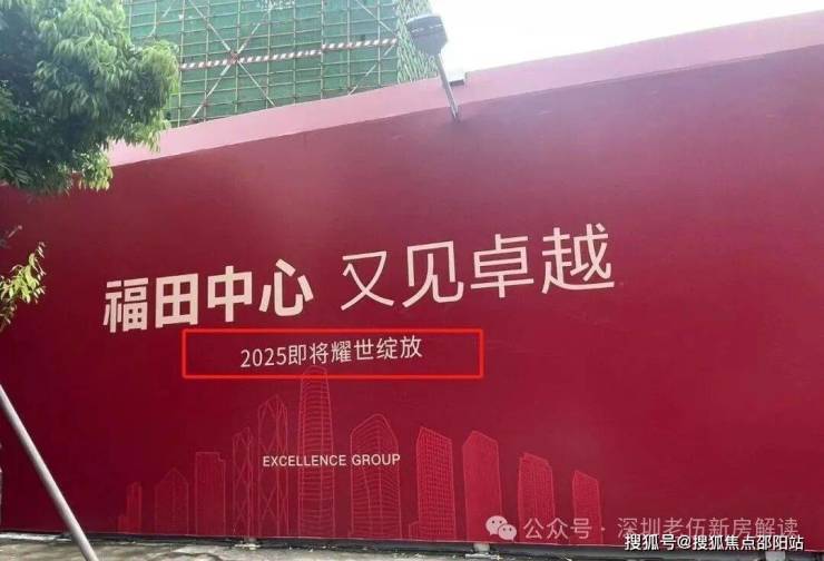 项目围挡标语:“福田中心卓越再现,2025年璀璨启幕。”