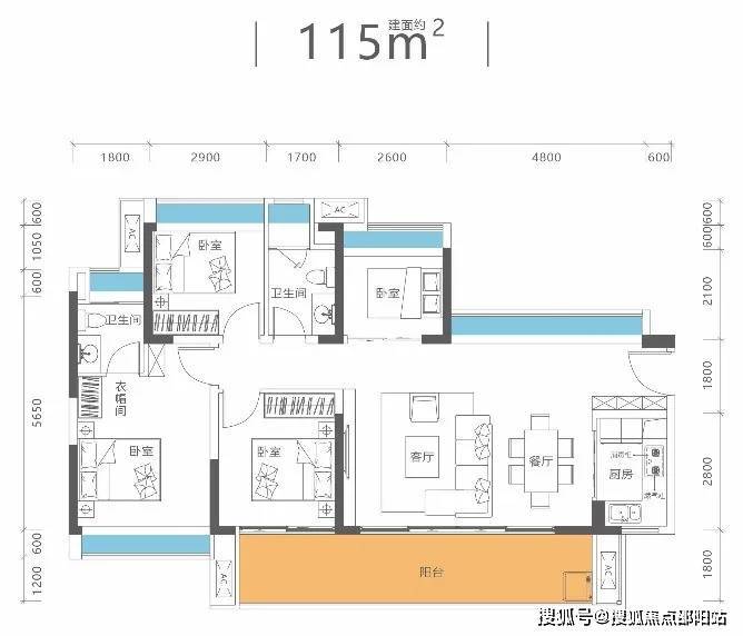 100平3房2卫,折后总价大概115万,首付18万,月供4200左右