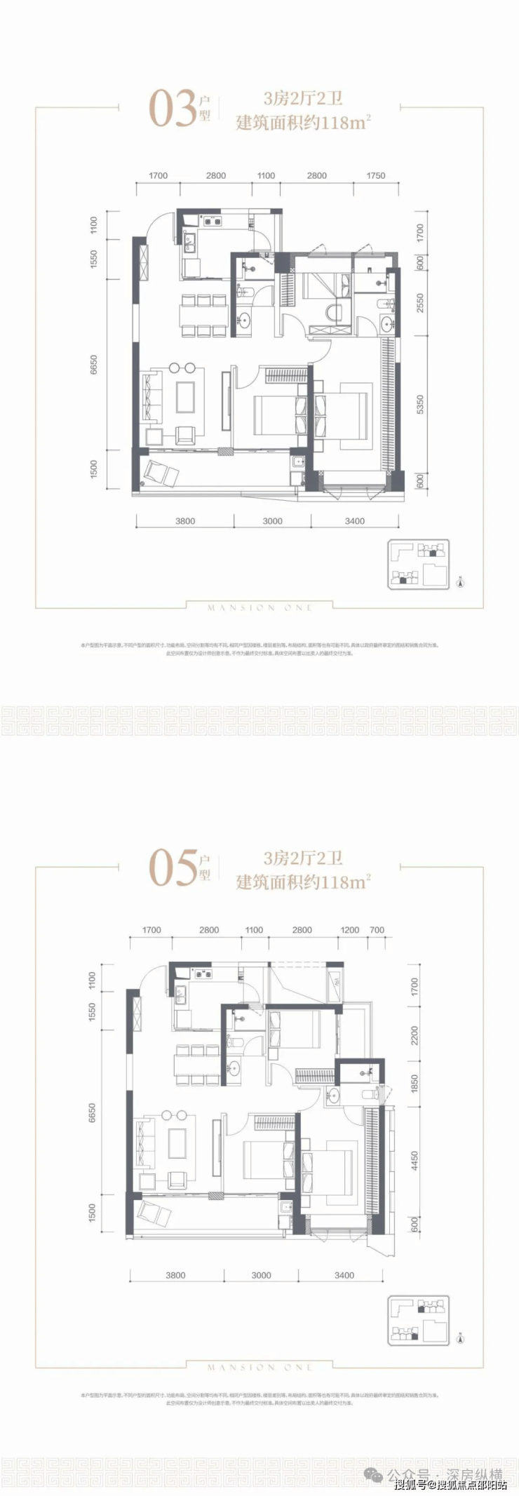 约120㎡三房两卫,中间户型南北通透,独立主卧套房,南向宽景阳台;边户动静分区明确,独立主卧套房,南向宽景阳台。