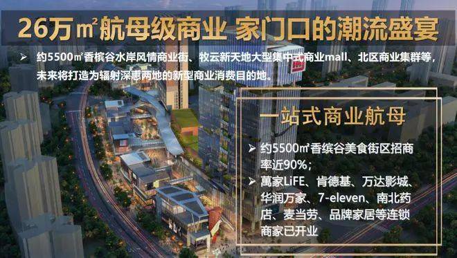 一站式商业航母 26万㎡航母旗舰商业,麦当劳、肯德基、万达影城、华润万家等品牌已强势入驻。