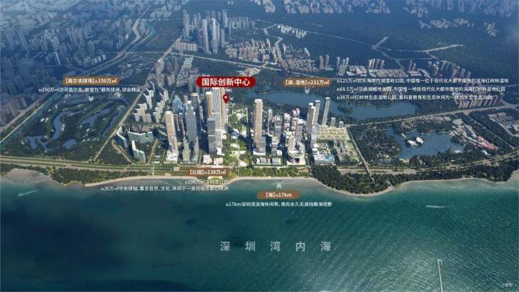 深超总作为城市核心地一线亲海区,集合了海(深圳湾)、湖(华侨城人工湖)、湿地(红树林国家湿地、华侨城国家湿地公园)、公园(深圳湾公园等)、高尔夫(沙河高尔夫球会)多重自然资源。