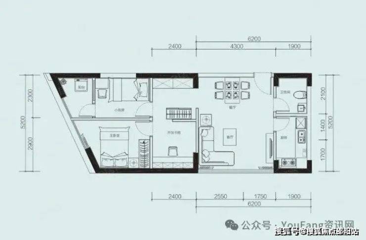 🌺约51/53㎡2+1房,1房1厅1卫。