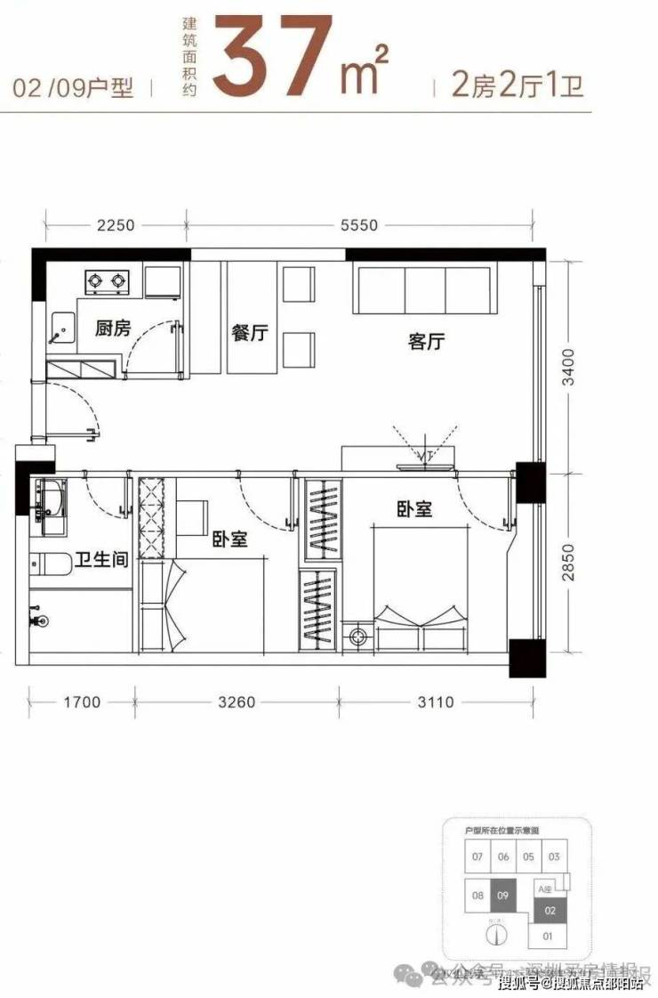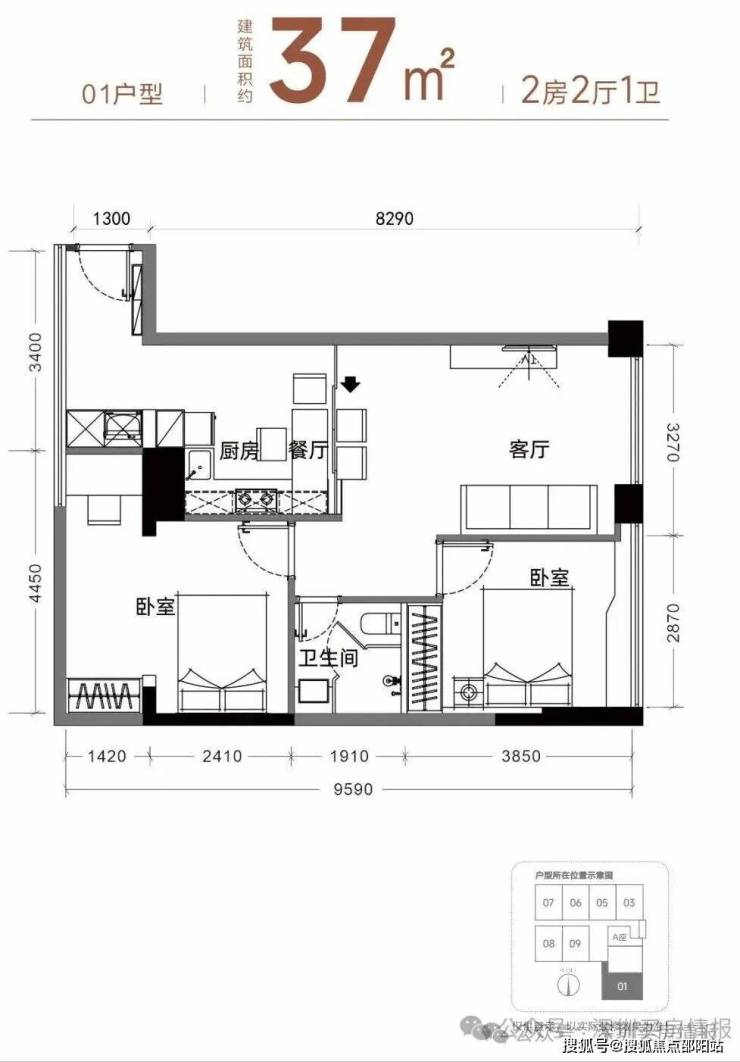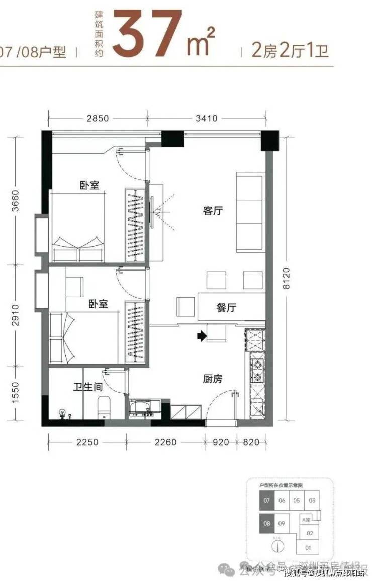【产品面积】约37㎡两房(实际套内使用面积接近54㎡)