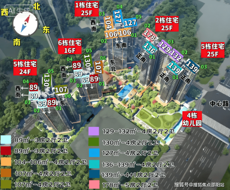 项目主打建面约 89-130㎡精装 3-4 房,全系遵循大面宽、南向采光、动静分区设计,搭配 270° 无柱转角飘窗与超大景观阳台,得房率高达 97.47%-104.06%,空间实用性拉满。