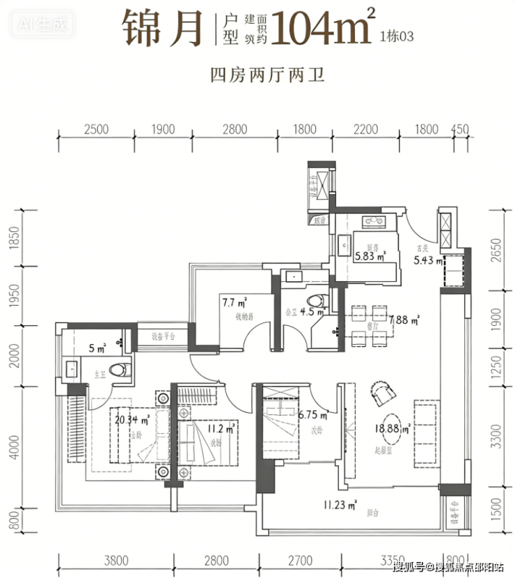 104-107㎡4 房 2 厅 2 卫