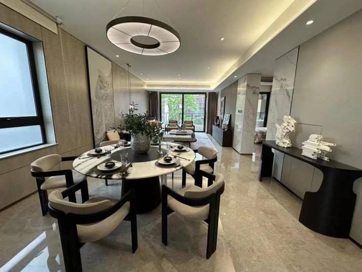 有意思的是,珠光云山壹号的叠墅产品是带精装交付,都是一线大品牌,比如博世蒸烤箱、德国“皇室制造商”唯宝洁具、全屋大金VRV中央空调及新风系统,墙面选用加拿大进口的枫影木等等。