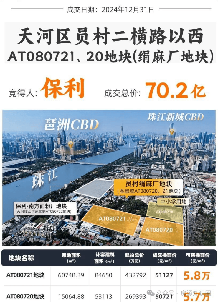 保利天曜是去年最后一天,广州楼市拍出“王炸”地块!保利 以432792万元拿下天河员村二横路以西AT080721地块(即绢麻厂地块),楼面价5.11万/平。若扣除配建,实际可售楼面价为5.8万/平,刷新广州楼面价TOP10榜单。另外,天河员村二横路以西AT080720地块也在今天上午出让,也是由保利拿下。该地块楼面价5.07万/平,扣除配建后,实际可售楼面价为5.7万/平。