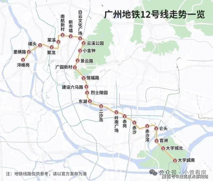 12号线(预计2024年通车)-广州换乘之王,广州市第一条无人驾驶地铁线路,与十数条轨道线无缝换乘,共经过白云文化广场、烈士陵园、二沙岛、赤沙等17个换乘站,可直达大学城,连通白云、越秀、海珠、番禺四大区域。