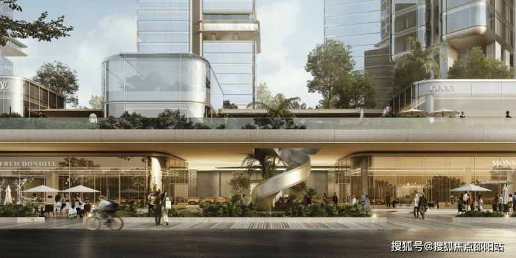 二层布局少量 “森系商业” ,二层中心则限定作为仅限住户使用的社区花园,在各楼栋之间创造一个步行友好、安全、安静的社区共享空间;再往上则是独立、私密的居住空间。