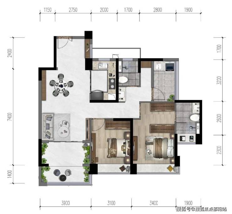(2栋01/02户,非最终版本,各梯腿户型有所差异,以售楼部现场输出为准)