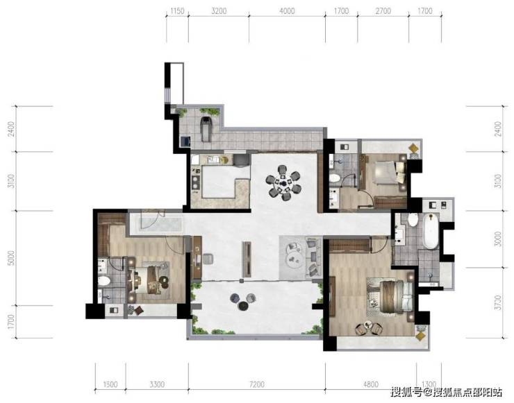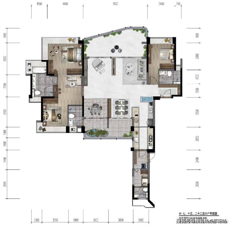 约135㎡尊享约7.4米转角阳台三面巨幕房