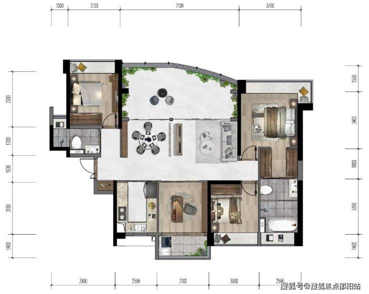 (3、5-7栋01户,非最终版本,各梯腿户型有所差异,以售楼部现场输出为准)