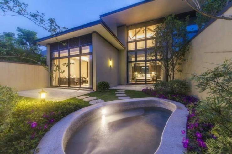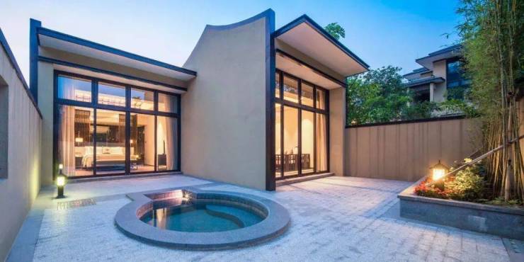 错落布局,让每户院内私藏一池天然含氡梳打温泉。