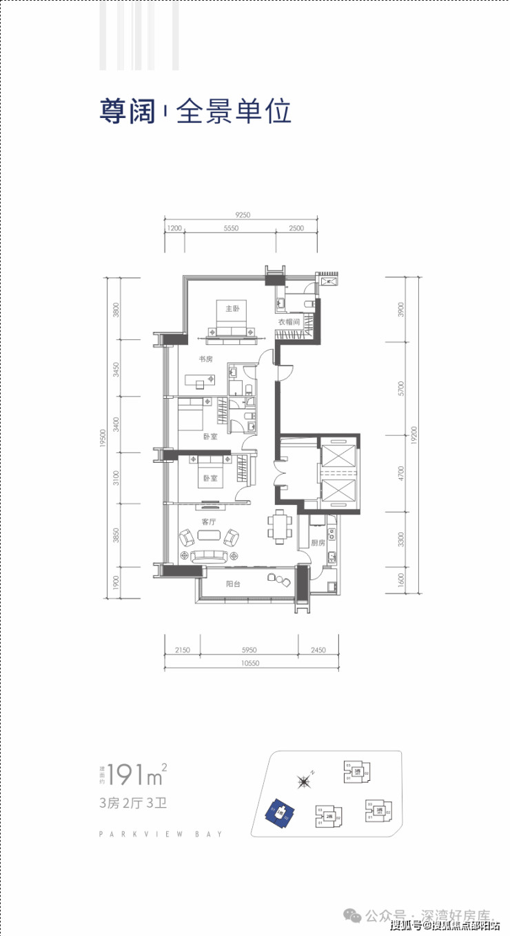 户型:分别是120平米3房2厅2卫,190平米4房2厅3卫