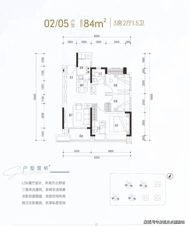 推出建面约84㎡三房两厅两卫,约98㎡三房两厅两卫,约114㎡四房两厅两卫,约128㎡四房两厅两卫,共计4个面积段产品。