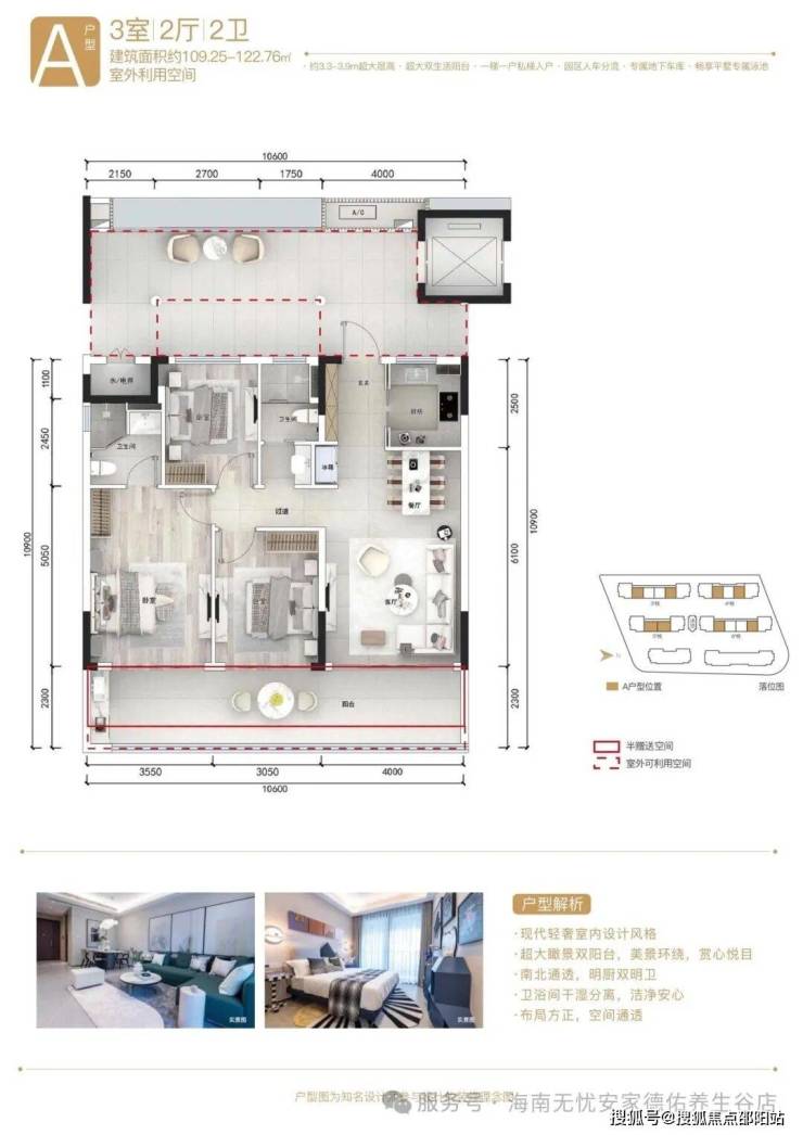 • 国家海岸海棠湾核心腹地,距21.8公里优质海岸线仅2公里,靠海不近海无潮湿困扰