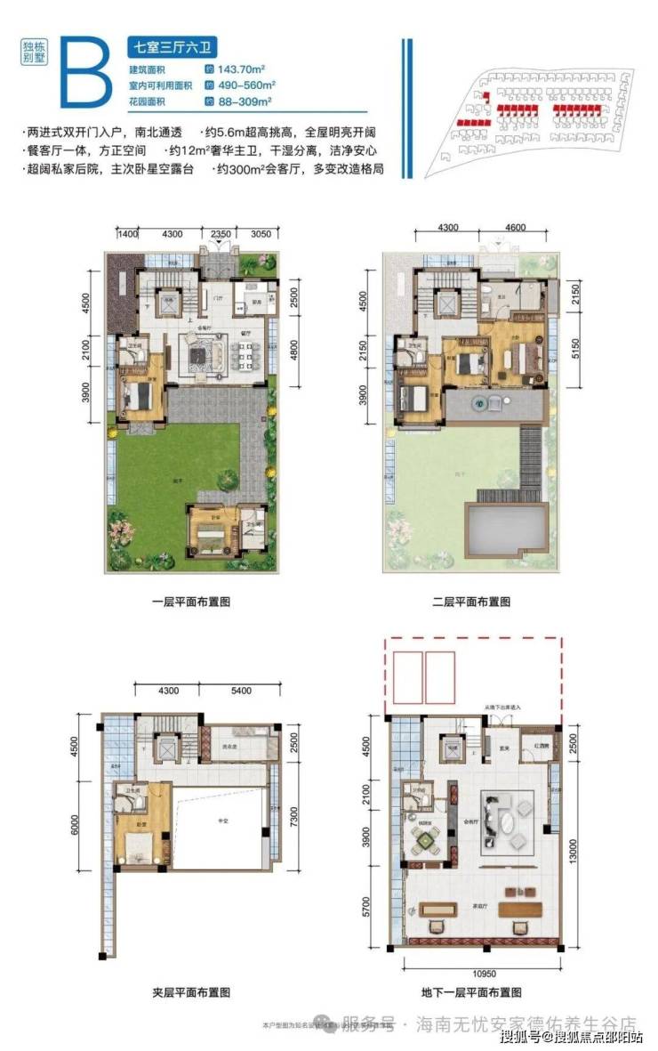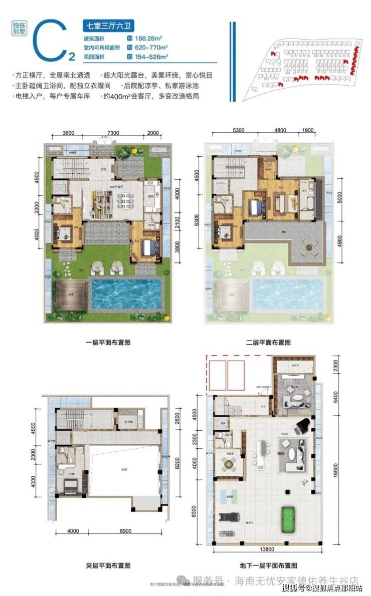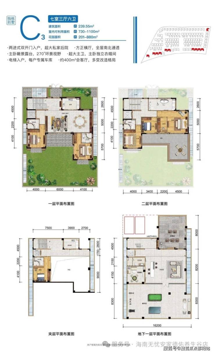 三期康养平墅,双⼊⼾⼤堂,约3.3-3.9⽶层⾼,专属地下⻋位。一梯一户,⼊⼾尊享奢敞花园,超⼤双重观景阳台,自配500㎡私属泳池,另享约2000㎡康悦泳池。