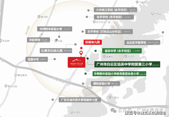 项目配建一所9班幼儿园,就在6月19号,距离项目750米的广州市白云区培英中学附属第三小学正式揭牌!