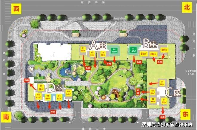 玖玖颂阁占地约1.4万㎡,建面约10.41万㎡,目前在售89㎡3房/128㎡4房。项目由5栋组成,E座为公租房,A~B-C座2梯4户,D座2梯5户, D座有部分回迁房,可售楼层为3-13层。