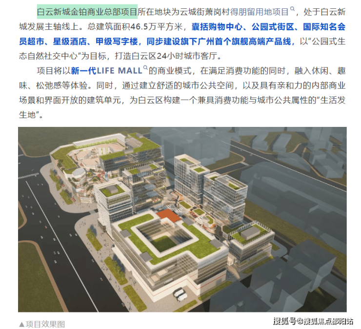 🔹46.5万平方米金铂商业总部位于白云新城核心区将打造旗下广州首个高端商业项目。项目总投资规模大、业态定位高,集商业零售、总部办公等多元功能于一体,与绿地中心、万达广场、无限极广场等重大载体形成集聚效应。
